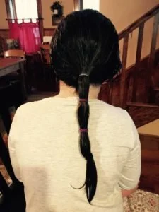 Unlike the boys, Bill’s mom, Faith, has often cut Allie’s and my hair, and there’ve been several times we’ve donated it to Wigs for Kids or Locks of Love. With a few careful, yet swift swipes with the scissors, she’s cut ten to twelve inches from ponytails held tight, that the hair might be bagged up and sent, used in the making of wigs for children undergoing cancer treatments or sufferers of alopecia areata.More than once, I’ve voiced my worry. “Will it be too short?” to which my mother-in-law replies–