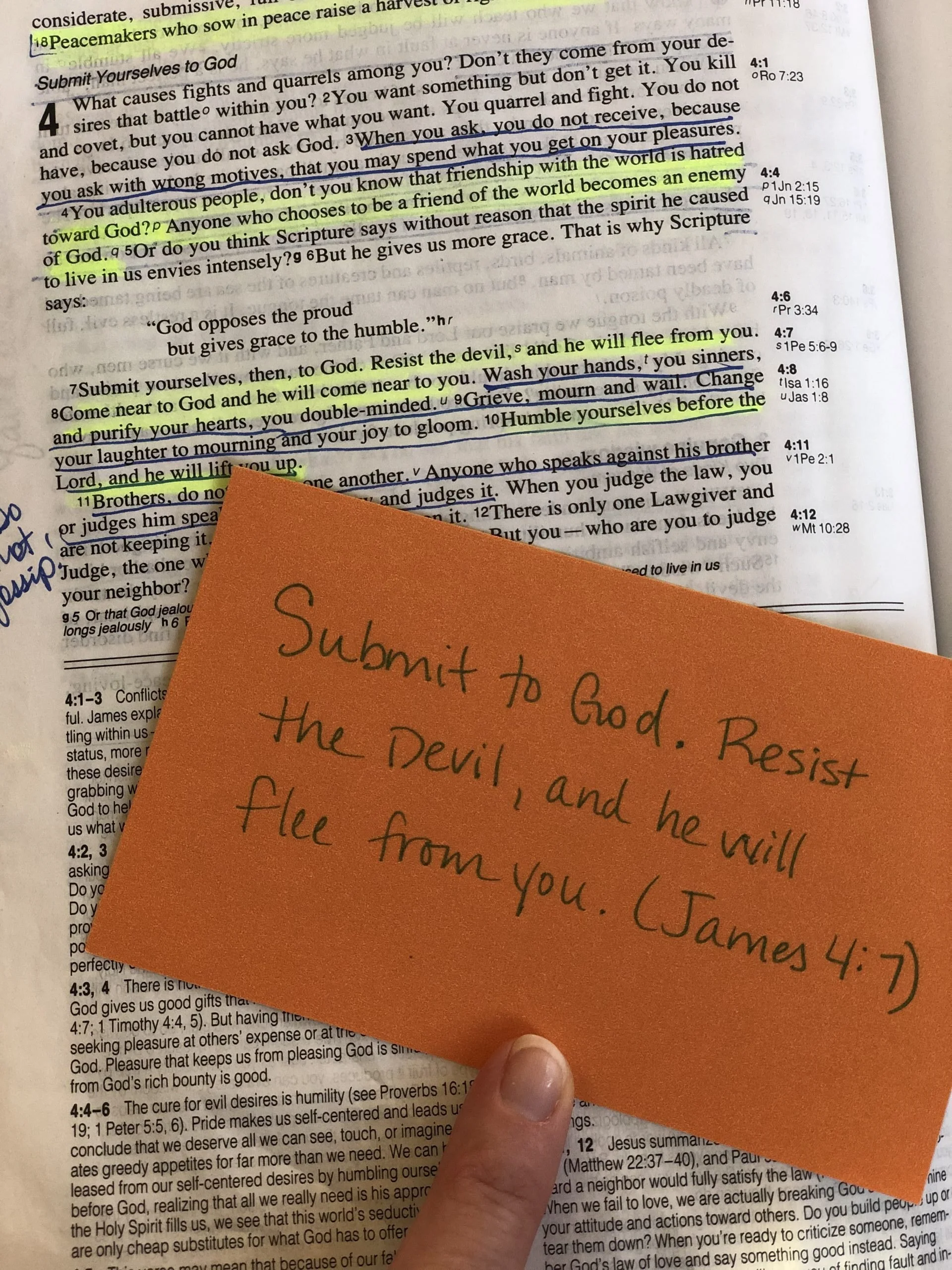 Therefore, dear friends–let us not give in to his lies. To his temptations (which are always deceptions aimed at making us think there’s something better apart from God’s best). To his tactics to scare us, send us fleeing.pastedGraphic_1.pngPut on your helmet and hold–by hiding in your heart!–your weapon. Spend time sharpening your knowledge of and love for God’s Word by reading it regularly. Share what you’re learning with others as a testimony of God’s work in your life. Have several who hold you accountable and who look to you to do the same. Write down scriptures that speak to your heart, then place them strategically that they might continue encouraging you at just the right moments–on bathroom mirrors, kitchen cupboards, the dash of your car.pastedGraphic_2.pngAnd always keep in mind–we’re to be like Jesus who knew just how to combat the enemy. To be victorious, we certainly can do no less.