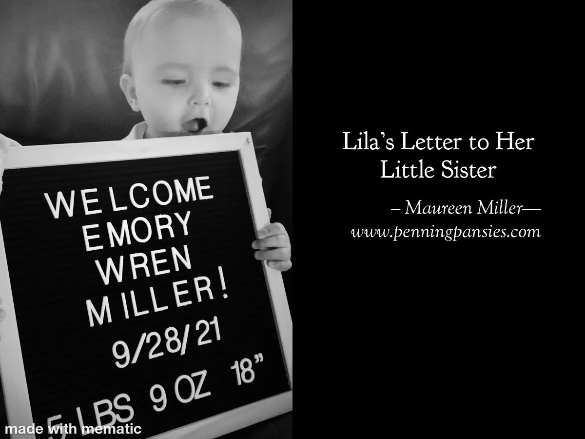 Dear Lila Grace…dear great granddaughter. Thank you SO much for sharing your thoughts. As we get older it seems as if the conflicts and chaos and sorrows in the world can weigh so heavily on our hearts and minds that we forget to remember and find rest in the sweet goodness and grace of God. But your middle name Grace reminds me and your words cause me to remember the basic truths in the song “Jesus Loves Me, This I know, For the Bible tells me so….” And you help me feel cozy again just thinking of my childhood crib, the warm light coming thru the window shade… the feeling of God in the sunshine as I played on the porch with mama’s yellow tin button box . Plus, how wonderful it was when Daddy would push me in my stroller and we would watch the little skywriter airplane make puffy white words in the blue sky. So now, I pray that you will remember to keep on sharing your memories and wisdom with sweet Emory Wren as you grow together. And I pray that you both will have lots of fun with good dogs, loving family, and singing happy Jesus songs too. They are part of the good roots that will make you both strong.