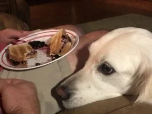 So sweet and love the pics. Our Golden,Ivy, also gently rests her snout on us and gives us those pleading eyes when she’s hoping we will share with her! Hopefully, you guys can meet her soon!