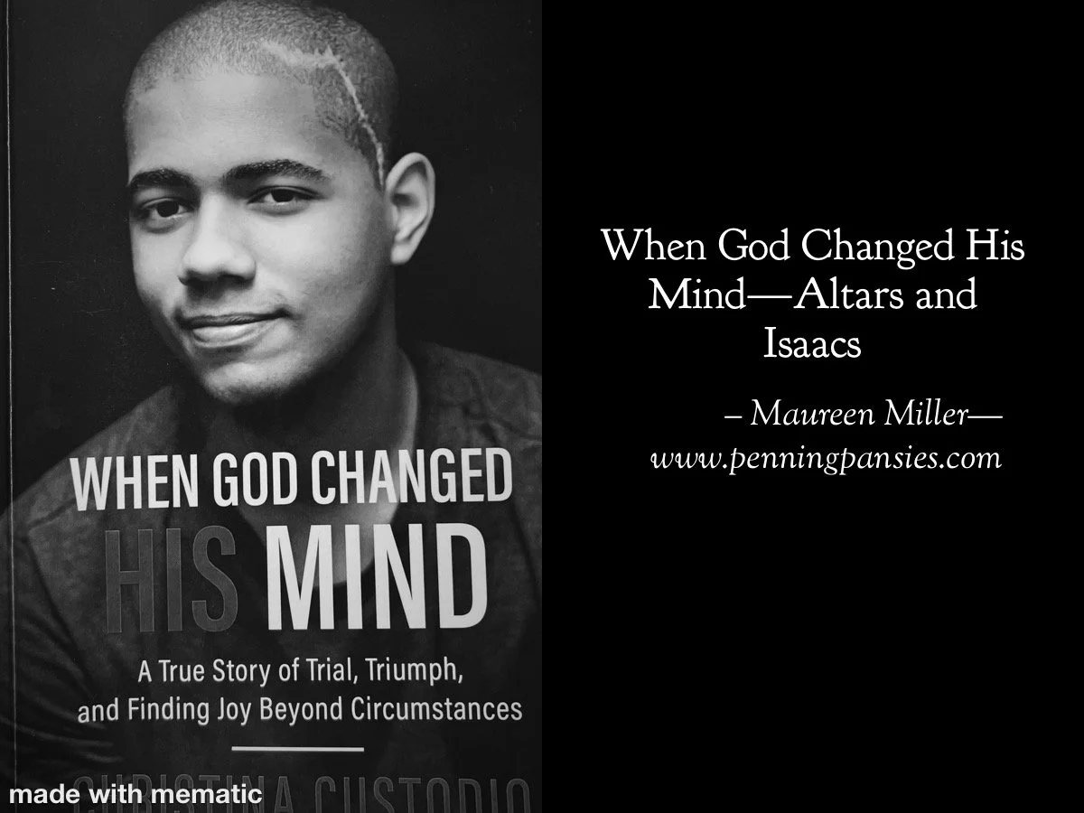 “The story of Abraham and Isaac comes to mind. That life-changing night, I truly had to give Isaiah over to God–to sacrifice him in a way [on the altar]. I knew God could save him, but I didn’t know if He would. There it is again: I know He can, but will He? That night I had to open the grip I had on my son and present him to the Lord, trusting God to do what was best…” (When God Changed His Mind, pp.233, 234).