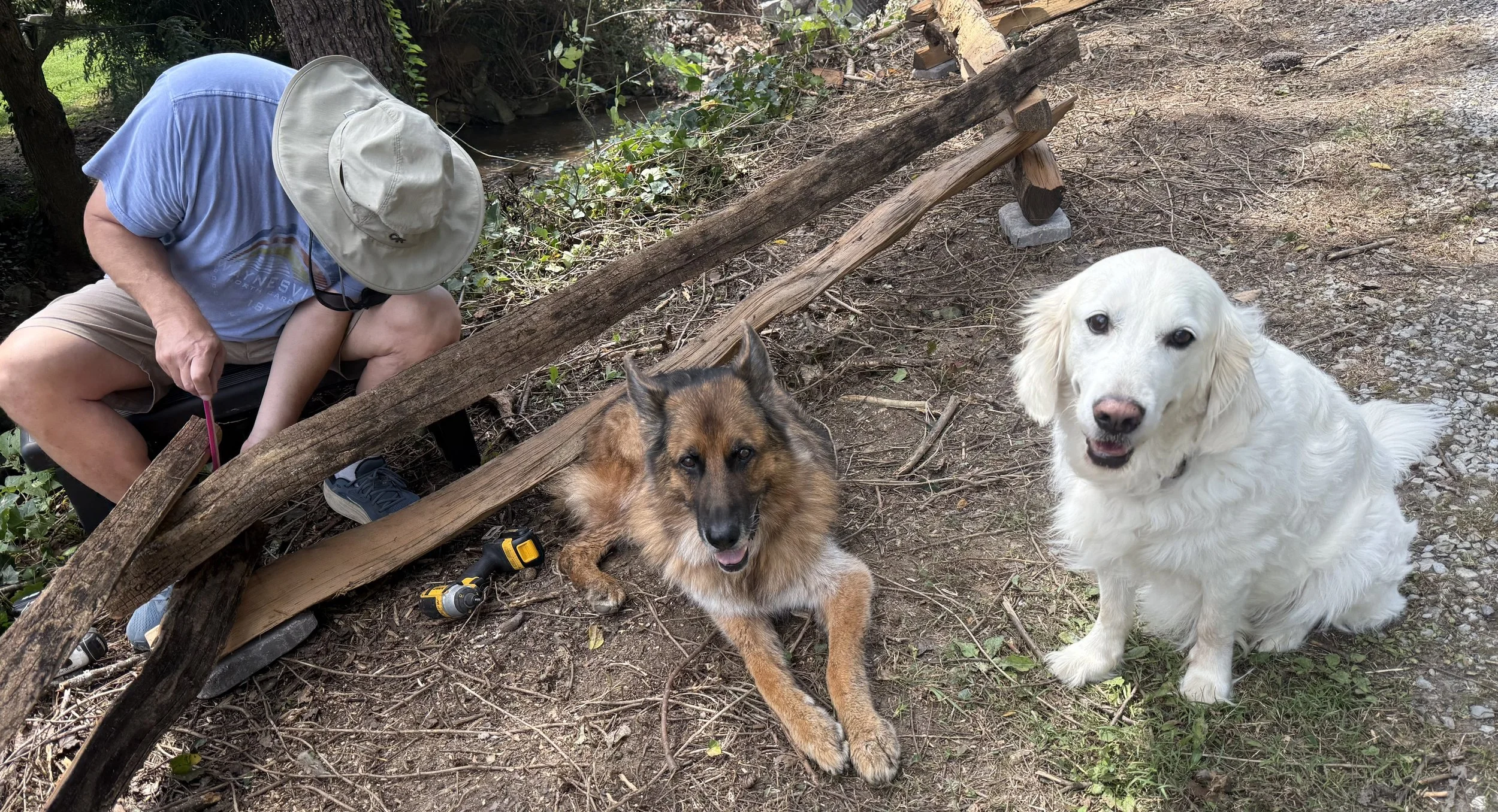 Even though they couldn’t really do anything to assist, our loyal pups Rocky and Prancer endured the heat of that Saturday afternoon just to stay close…